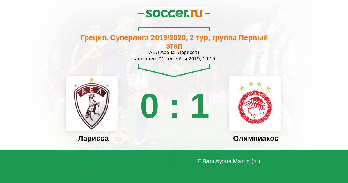 Ларисса - Олимпиакос: обзор матча 1 сентября 2019