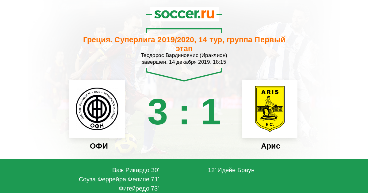 ОФИ - Арис: обзор матча 14 декабря 2019