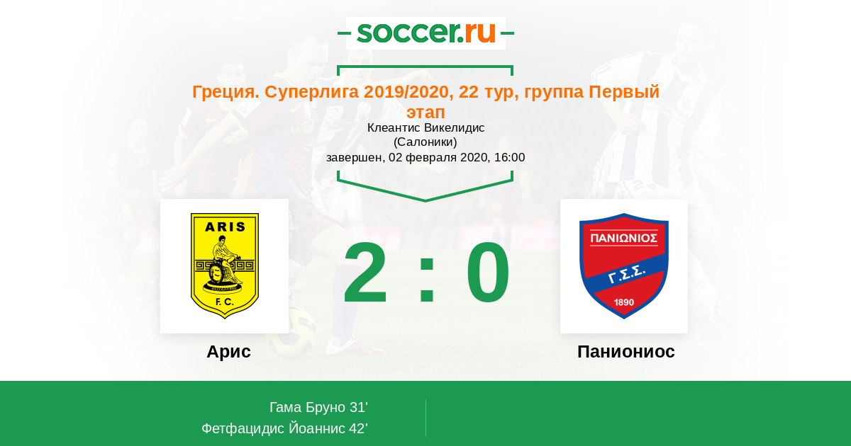 Арис - Паниониос: обзор матча 2 февраля 2020