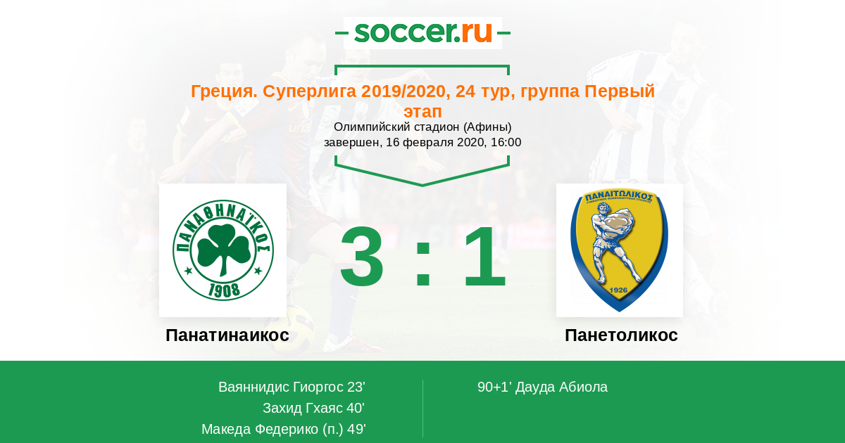 Панатинаикос - Панетоликос: обзор матча 16 февраля 2020
