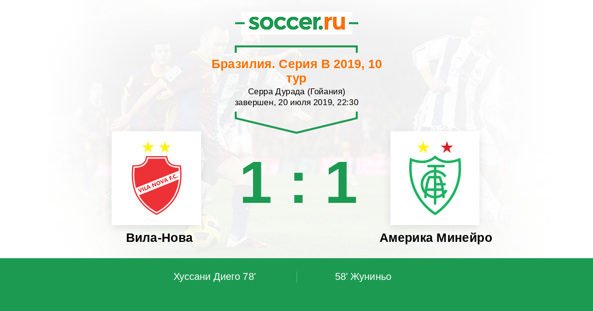 Вила-Нова - Америка Минейро: обзор матча 20 июля 2019