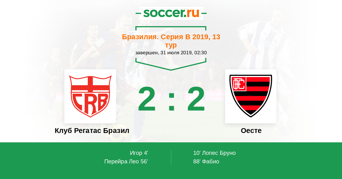 Клуб Регатас Бразил - Оесте: обзор матча 31 июля 2019