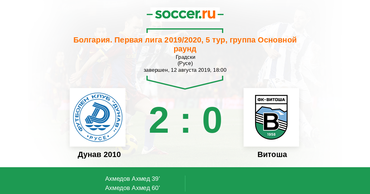 Дунав 2010 - Витоша: обзор матча 12 августа 2019