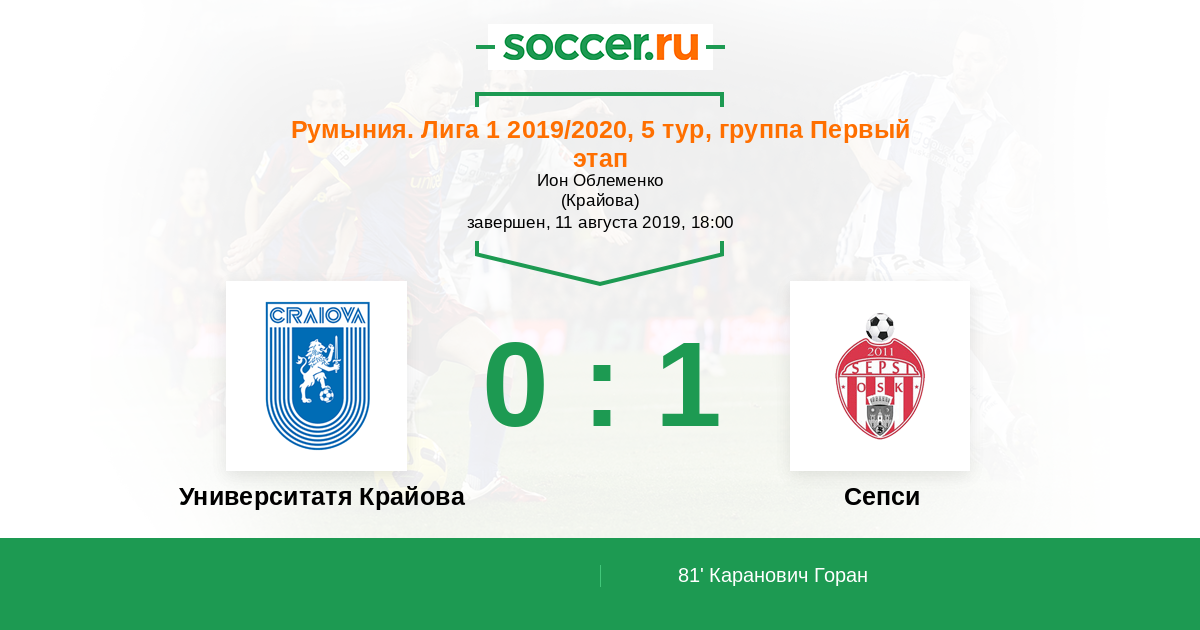 Университатя Крайова - Сепси: обзор матча 11 августа 2019