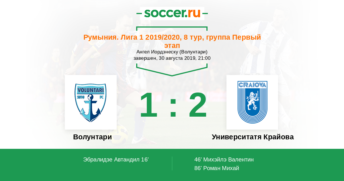 Волунтари - Университатя Крайова: обзор матча 30 августа 2019