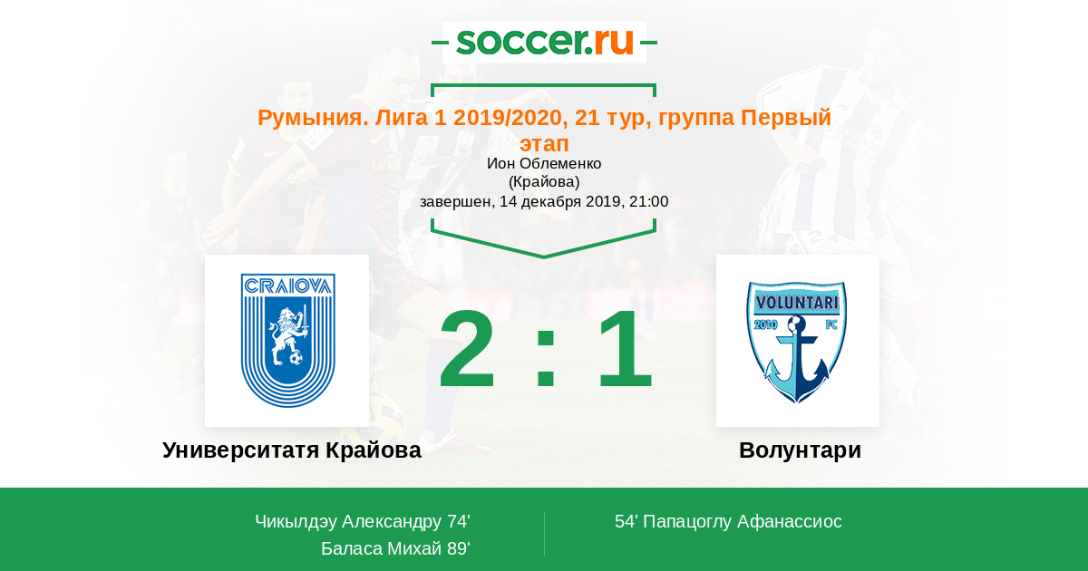 Университатя Крайова - Волунтари: обзор матча 14 декабря 2019