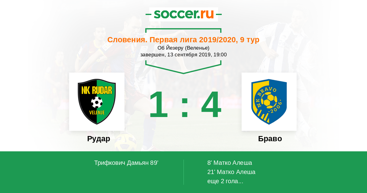 Рудар - Браво: обзор матча 13 сентября 2019