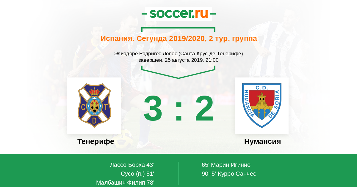 Тенерифе - Нумансия: обзор матча 25 августа 2019