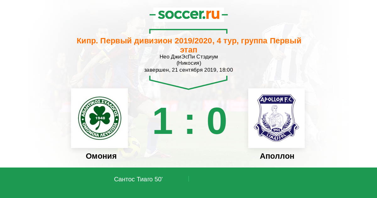 Омония - Аполлон: обзор матча 21 сентября 2019