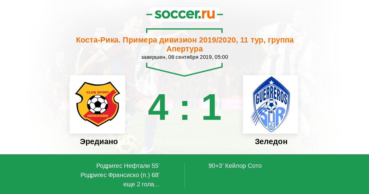 Эредиано - Зеледон: обзор матча 8 сентября 2019