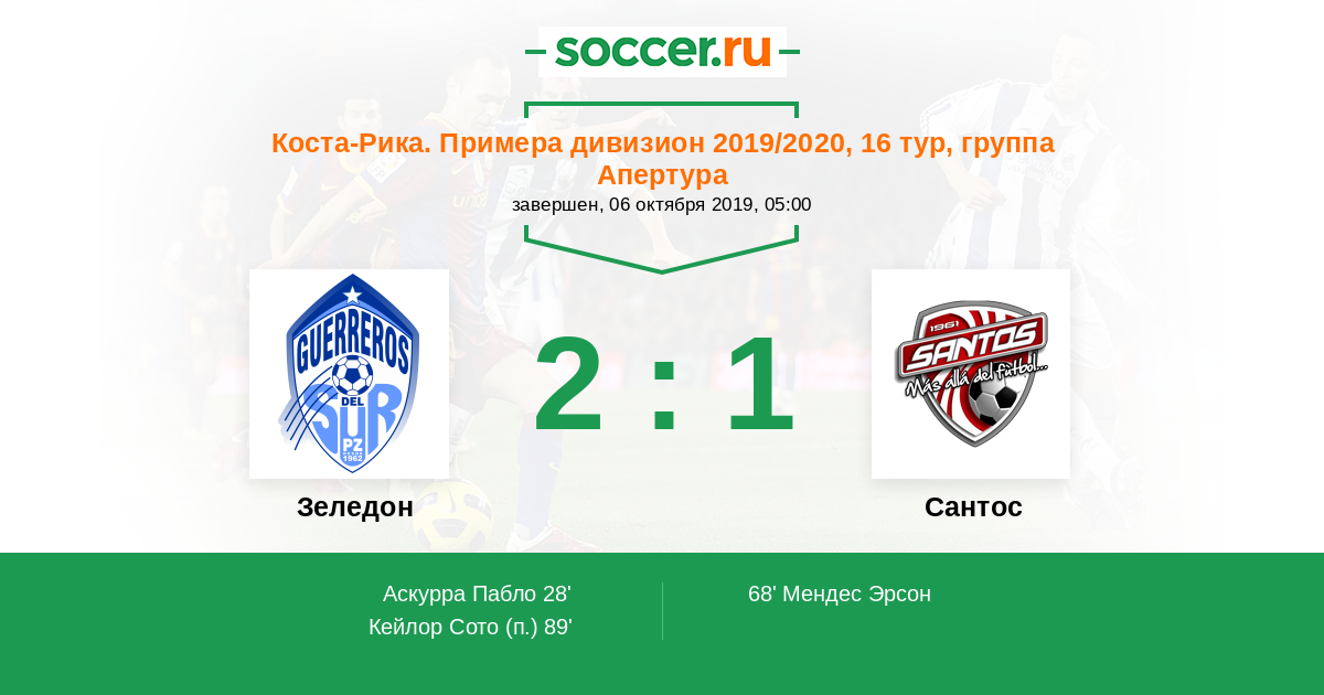 Зеледон - Сантос: обзор матча 6 октября 2019