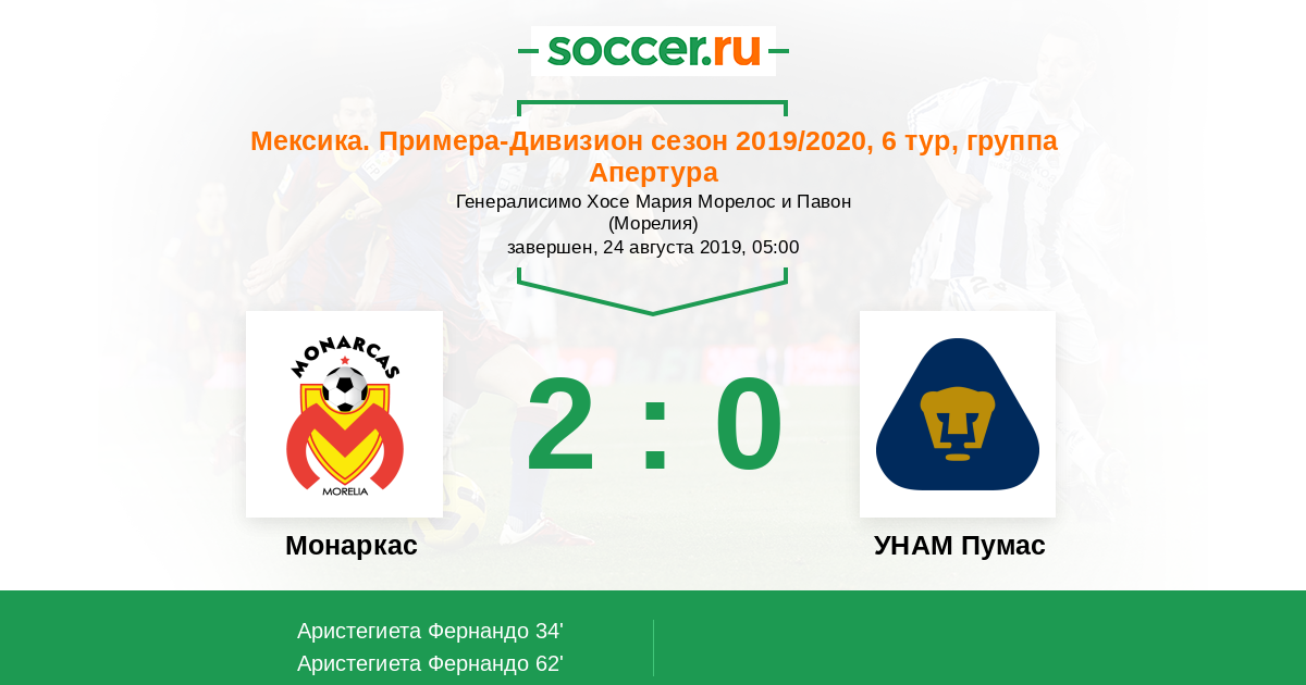 Монаркас - УНАМ Пумас: обзор матча 24 августа 2019