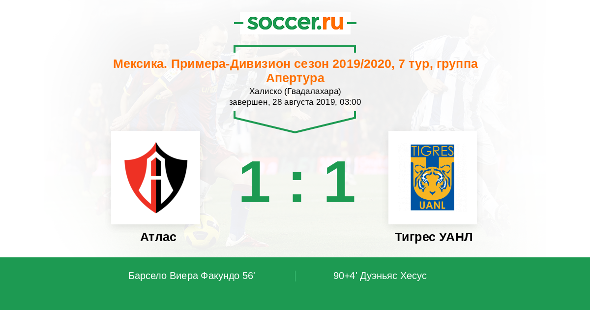 Атлас - Тигрес УАНЛ: обзор матча 28 августа 2019