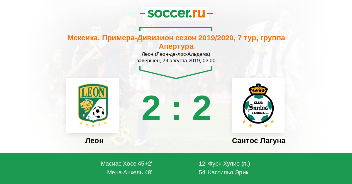 Леон - Сантос Лагуна: обзор матча 29 августа 2019