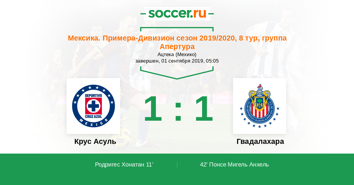 Крус Асуль - Гвадалахара: обзор матча 1 сентября 2019