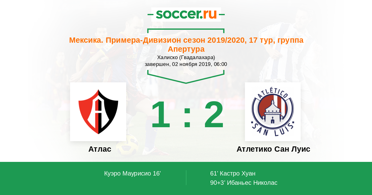 Атлас - Атлетико Сан Луис: обзор матча 2 ноября 2019