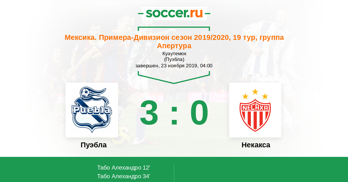 Пуэбла - Некакса: обзор матча 23 ноября 2019