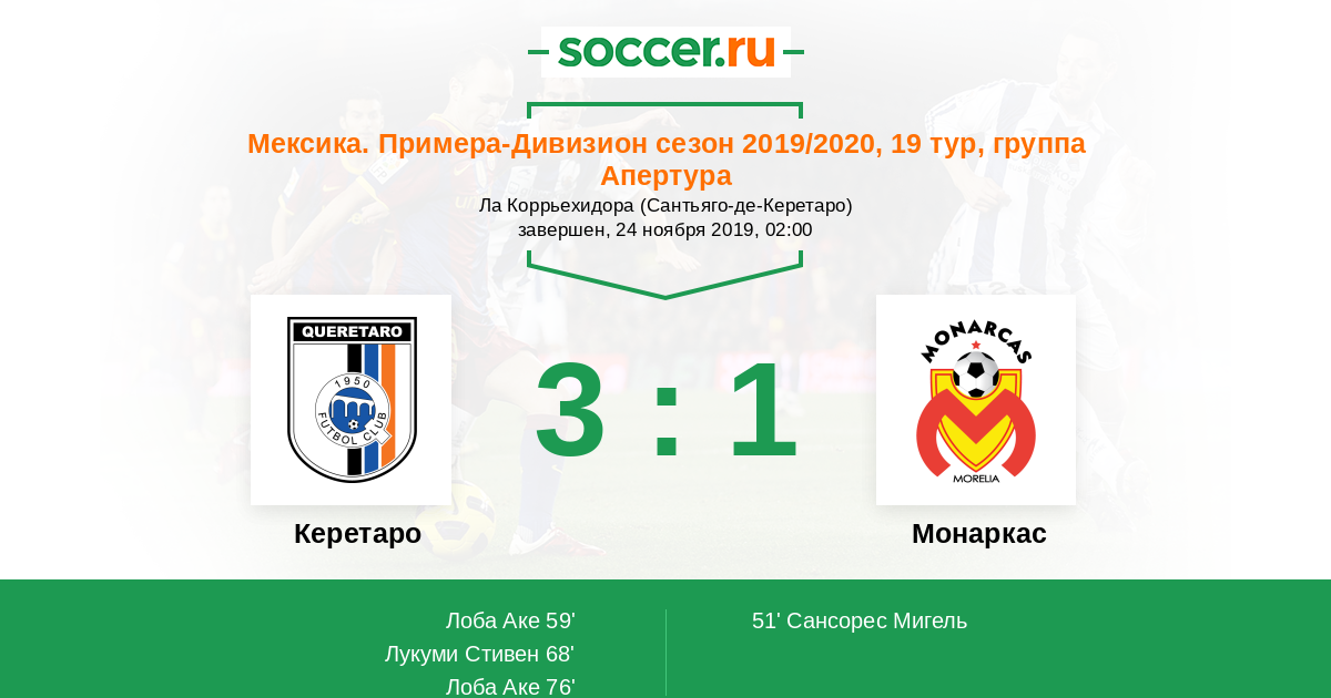 Керетаро - Монаркас: обзор матча 24 ноября 2019