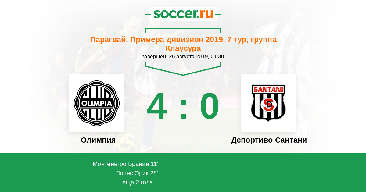 Олимпия - Депортиво Сантани: обзор матча 26 августа 2019