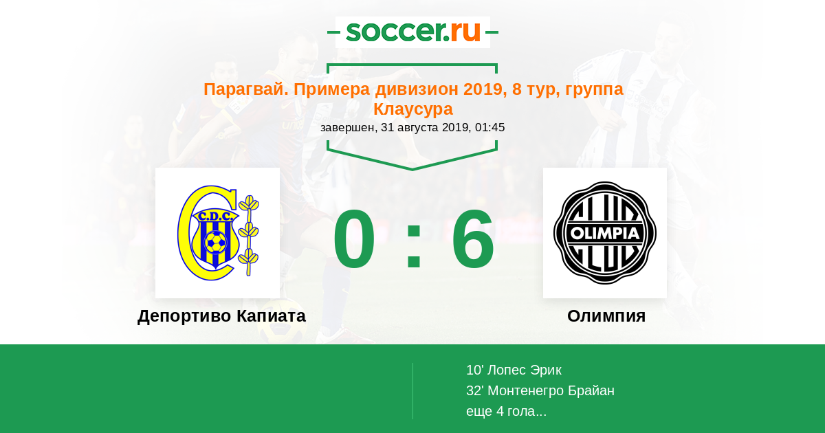 Депортиво Капиата - Олимпия: обзор матча 31 августа 2019