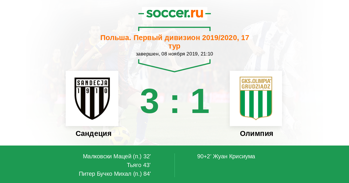 Сандеция - Олимпия: обзор матча 8 ноября 2019