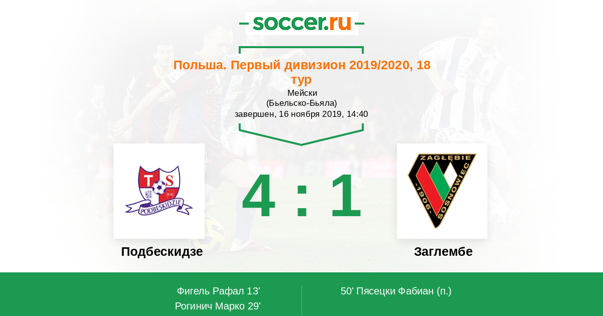 Подбескидзе - Заглембе: обзор матча 16 ноября 2019
