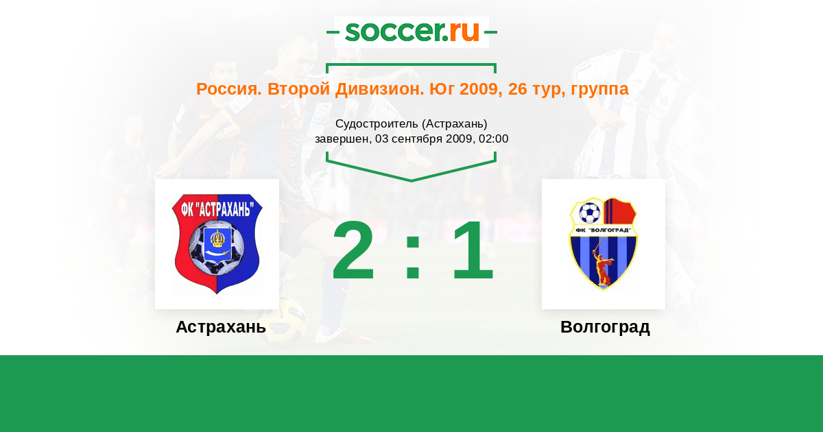 Астрахань - Волгоград: обзор матча 3 сентября 2009