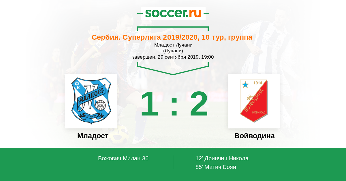 Младост - Войводина: обзор матча 29 сентября 2019