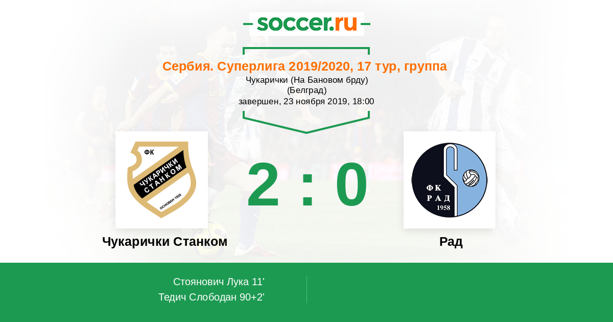 Чукарички Станком - Рад: обзор матча 23 ноября 2019
