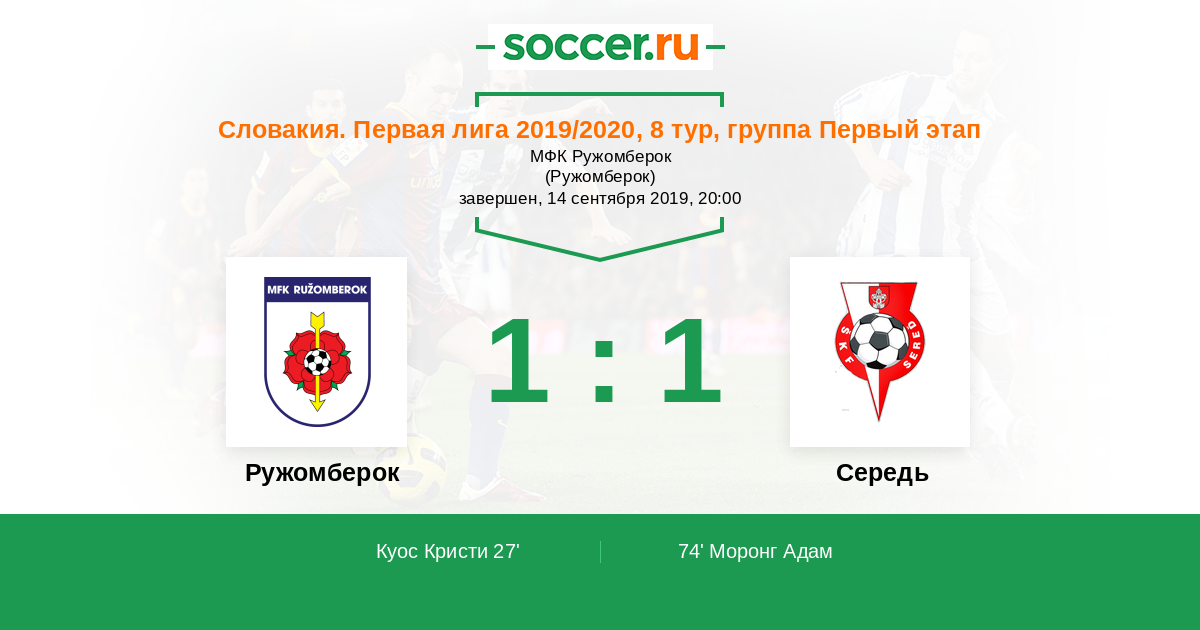 Ружомберок - Середь: обзор матча 14 сентября 2019