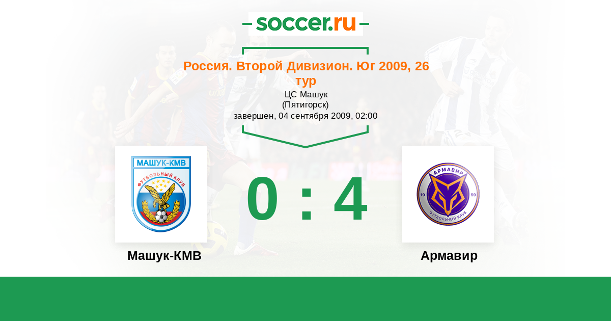 Машук-КМВ - Торпедо Армавир: обзор матча 4 сентября 2009