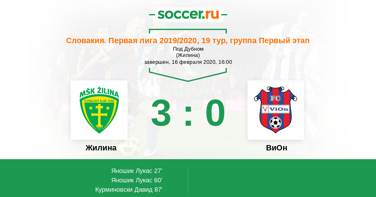 Жилина - ВиОн: обзор матча 16 февраля 2020