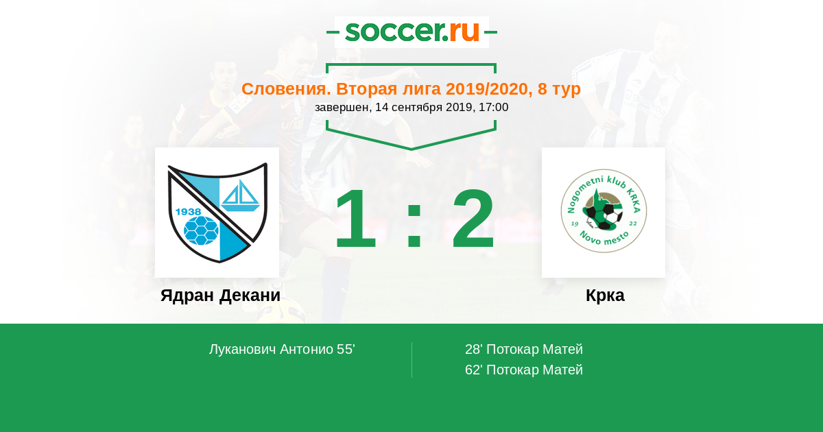 Ядран Декани - Крка: обзор матча 14 сентября 2019