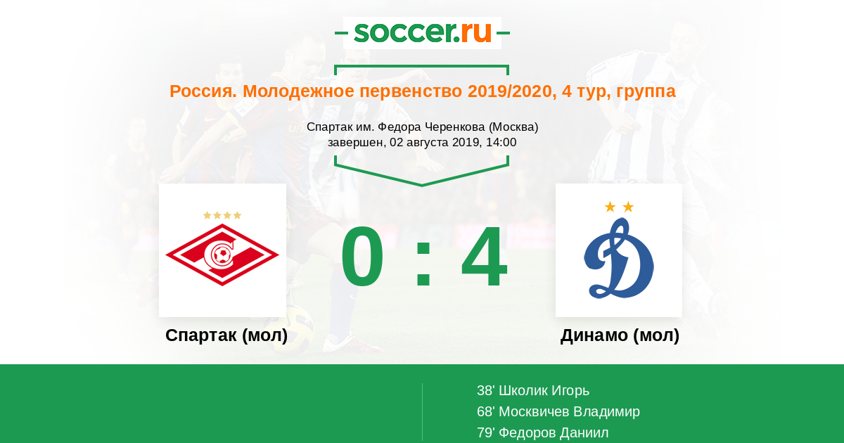 Спартак (мол) - Динамо (мол): обзор матча 2 августа 2019
