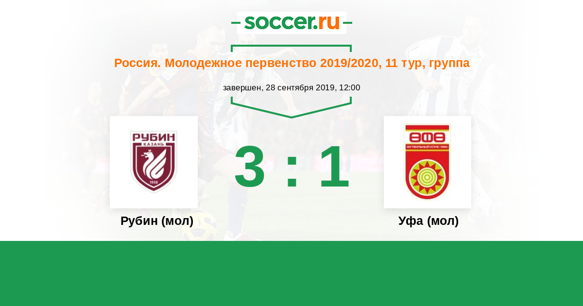 Рубин (мол) - Уфа (мол): обзор матча 28 сентября 2019
