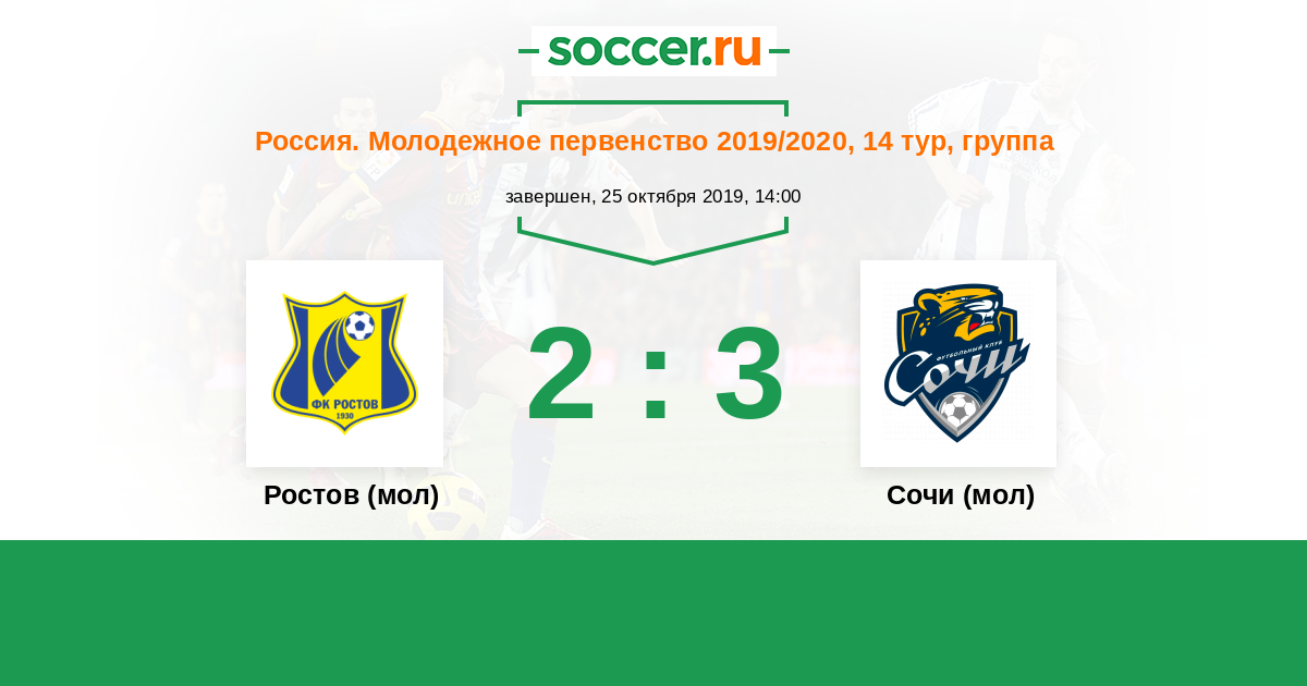 Ростов (мол) - Сочи (мол): обзор матча 25 октября 2019