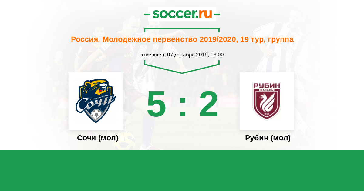 Сочи (мол) - Рубин (мол): обзор матча 7 декабря 2019