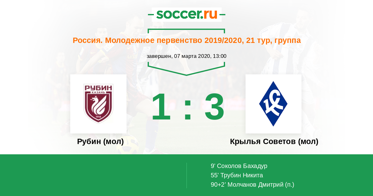 Рубин (мол) - Крылья Советов (мол): обзор матча 7 марта 2020