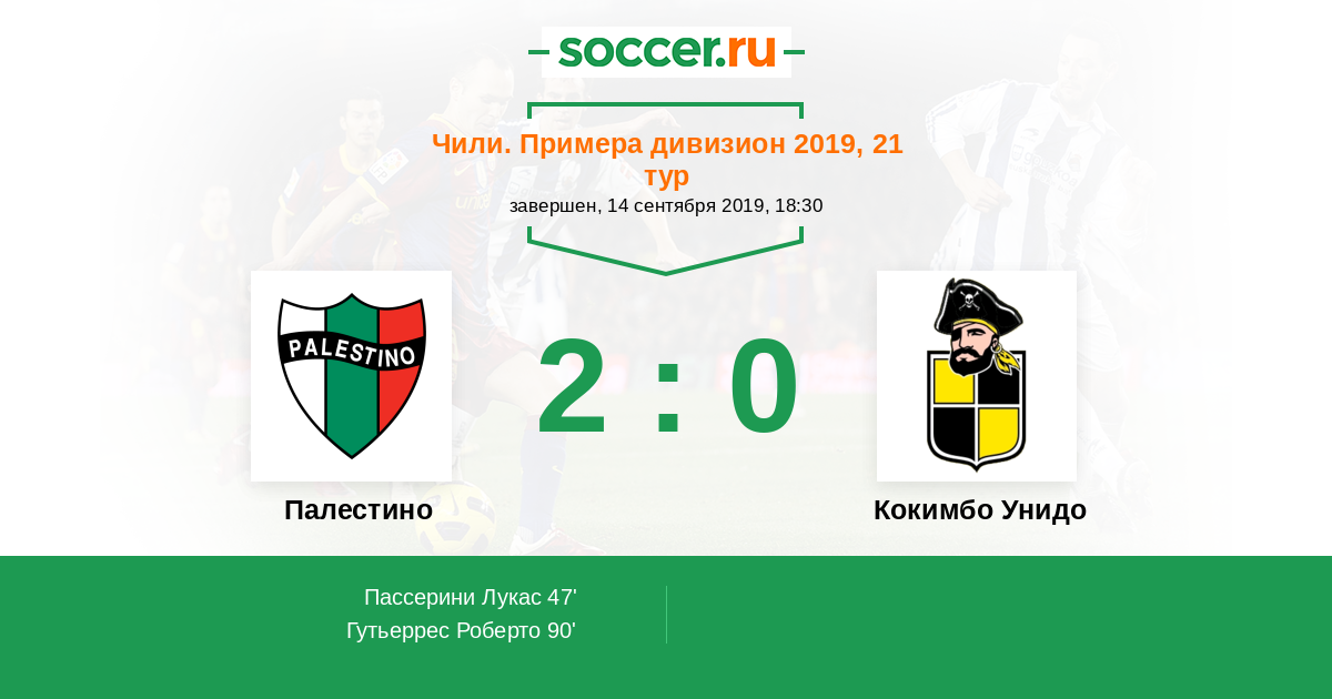 Палестино - Кокимбо Унидо: обзор матча 14 сентября 2019