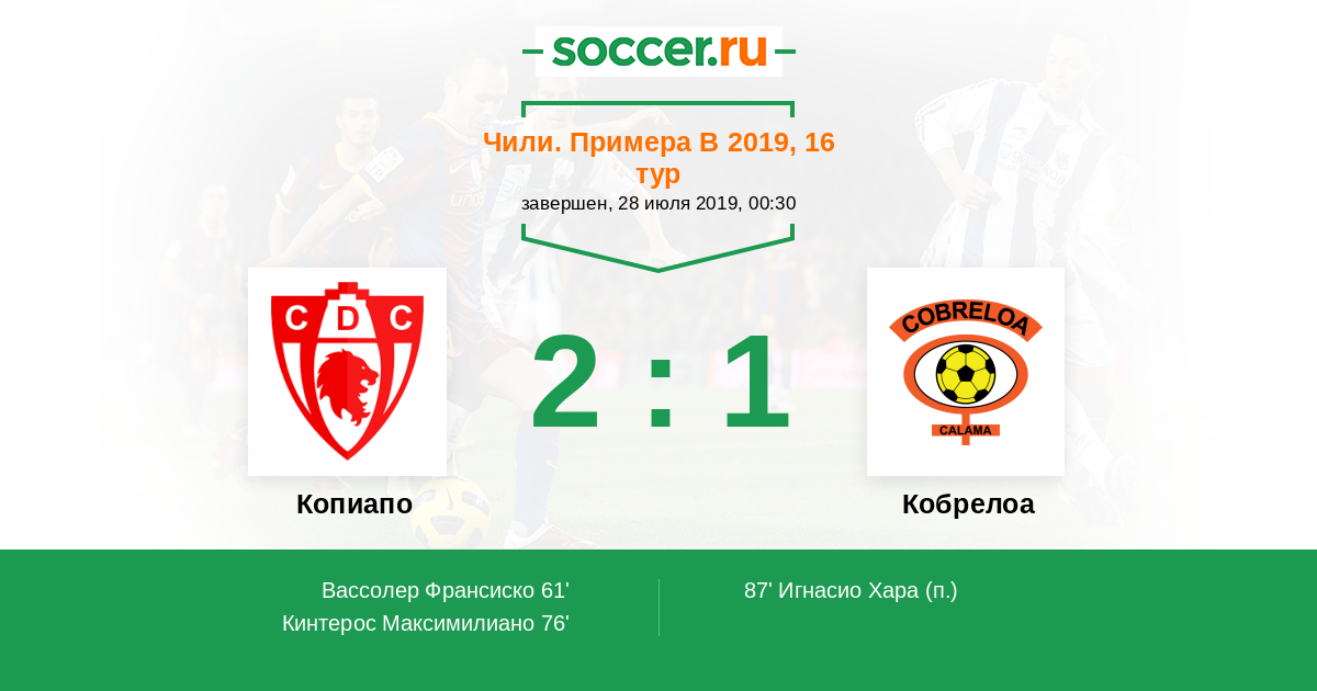 Копиапо - Кобрелоа: обзор матча 28 июля 2019