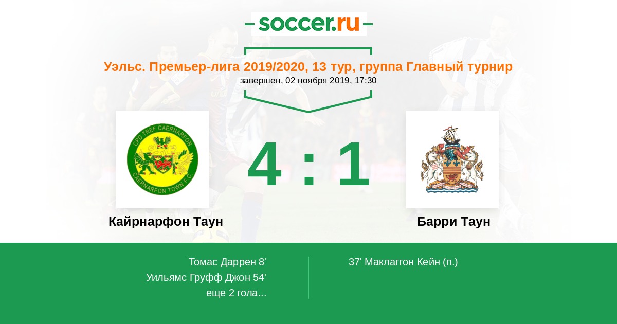 Кайрнарфон Таун - Барри Таун: обзор матча 2 ноября 2019