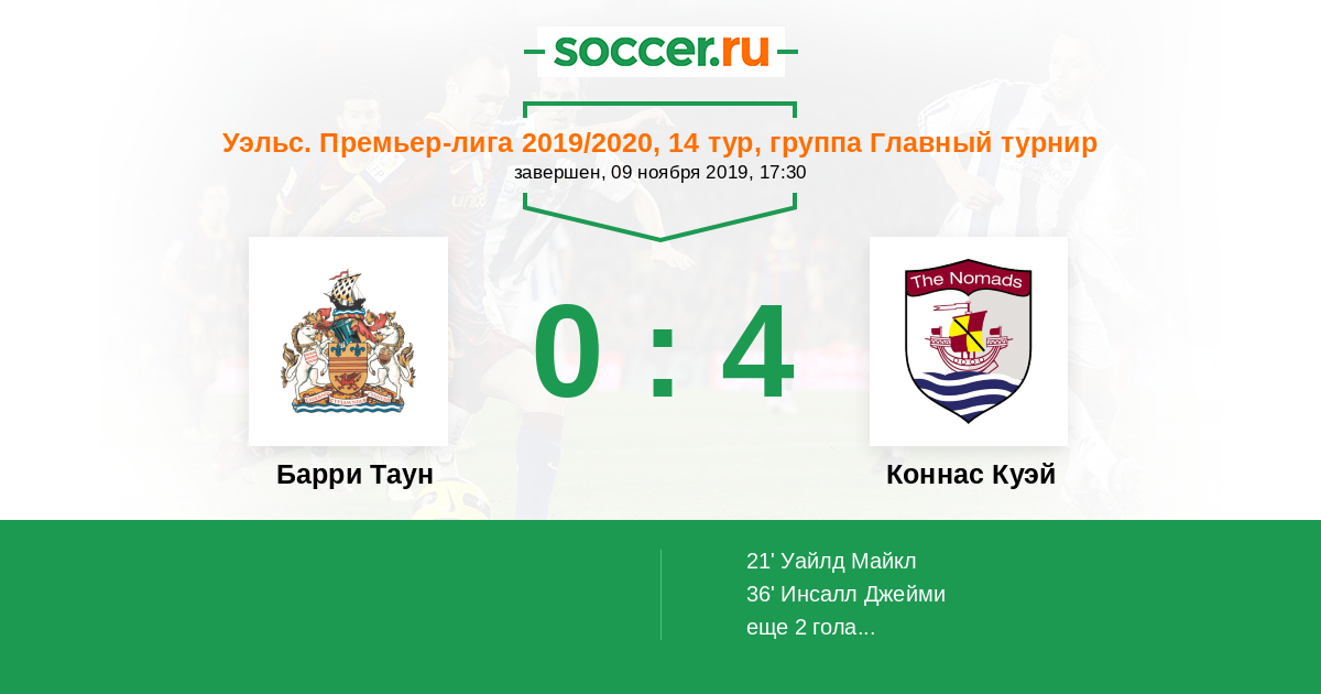 Барри Таун - Коннас Куэй: обзор матча 9 ноября 2019