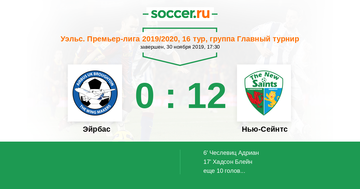 Эйрбас - Нью-Сейнтс: обзор матча 30 ноября 2019