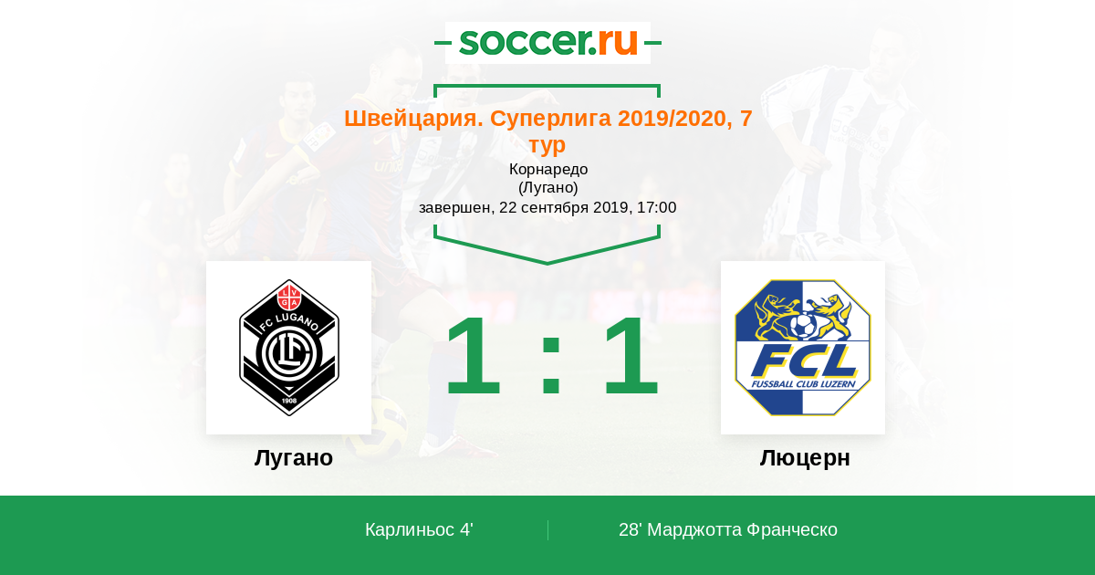 Лугано - Люцерн: обзор матча 22 сентября 2019