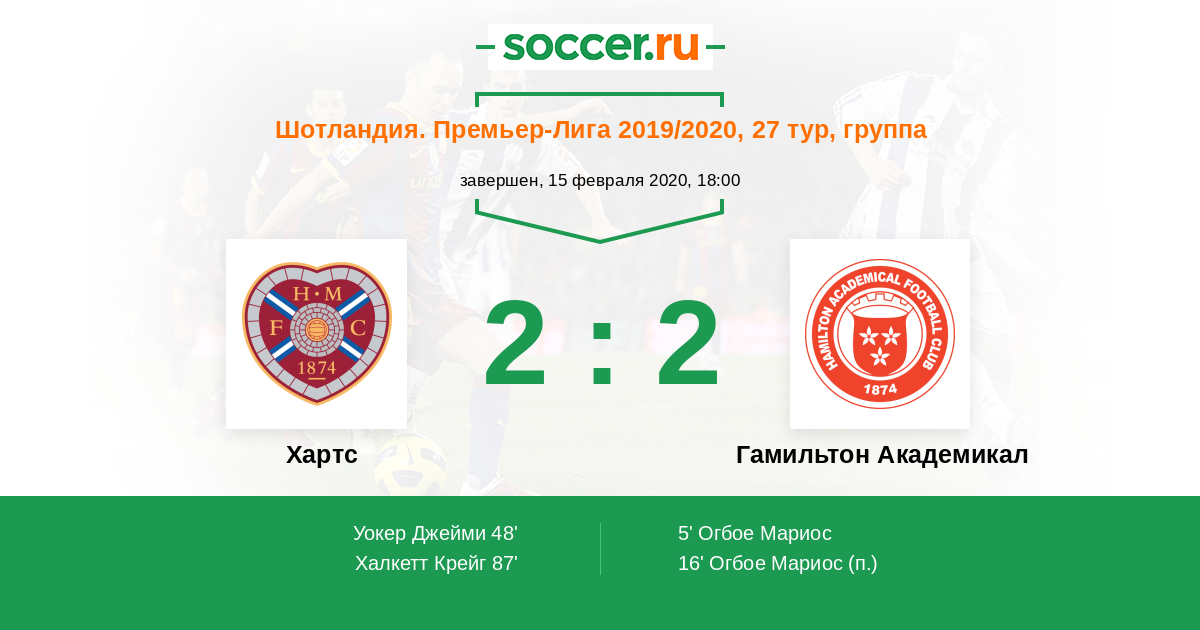 Хартс - Гамильтон Академикал: обзор матча 15 февраля 2020