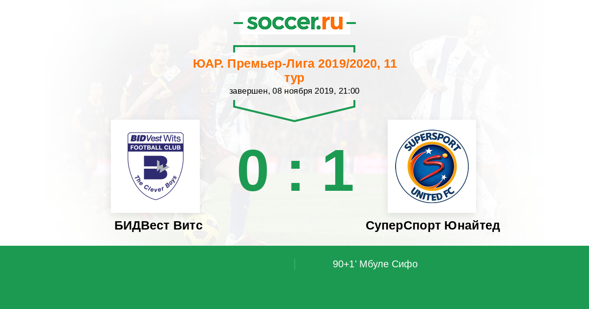 БИДВест Витс - СуперСпорт Юнайтед: обзор матча 8 ноября 2019