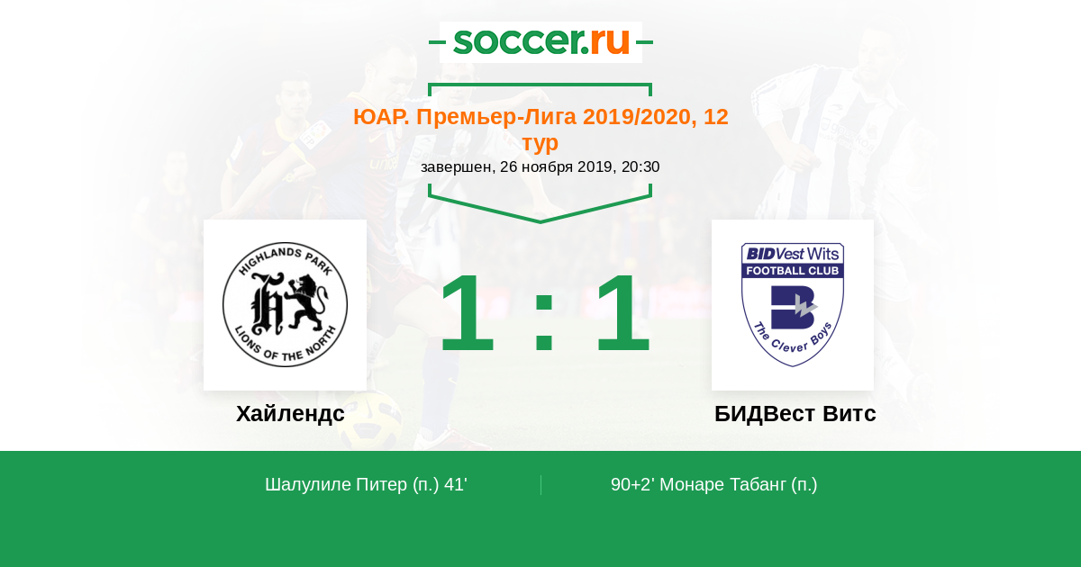 Хайлендс - БИДВест Витс: обзор матча 26 ноября 2019