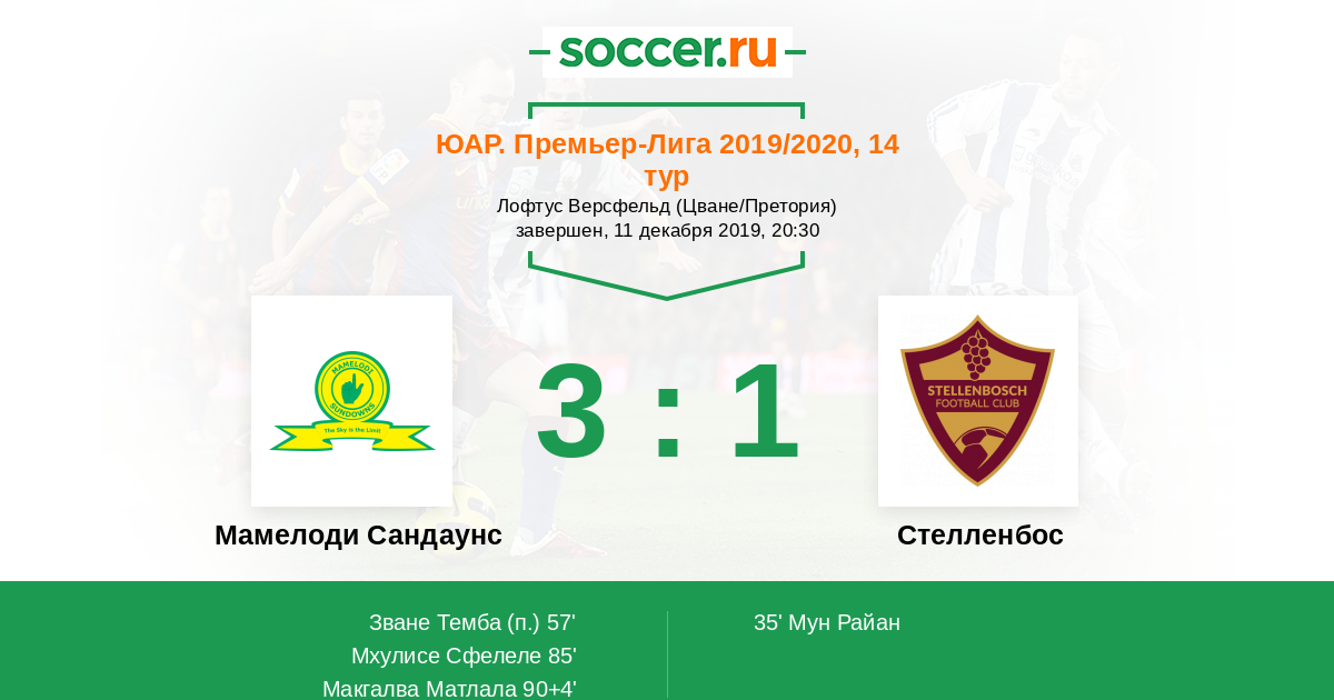 Мамелоди Сандаунс - Стелленбос: обзор матча 11 декабря 2019