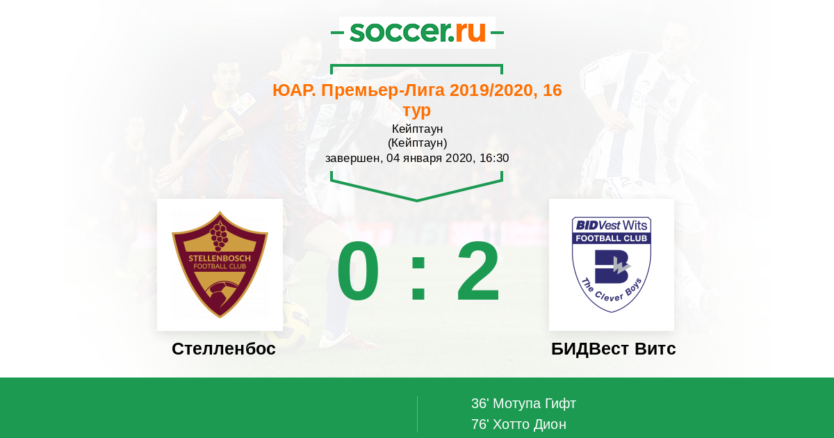 Стелленбос - БИДВест Витс: обзор матча 4 января 2020