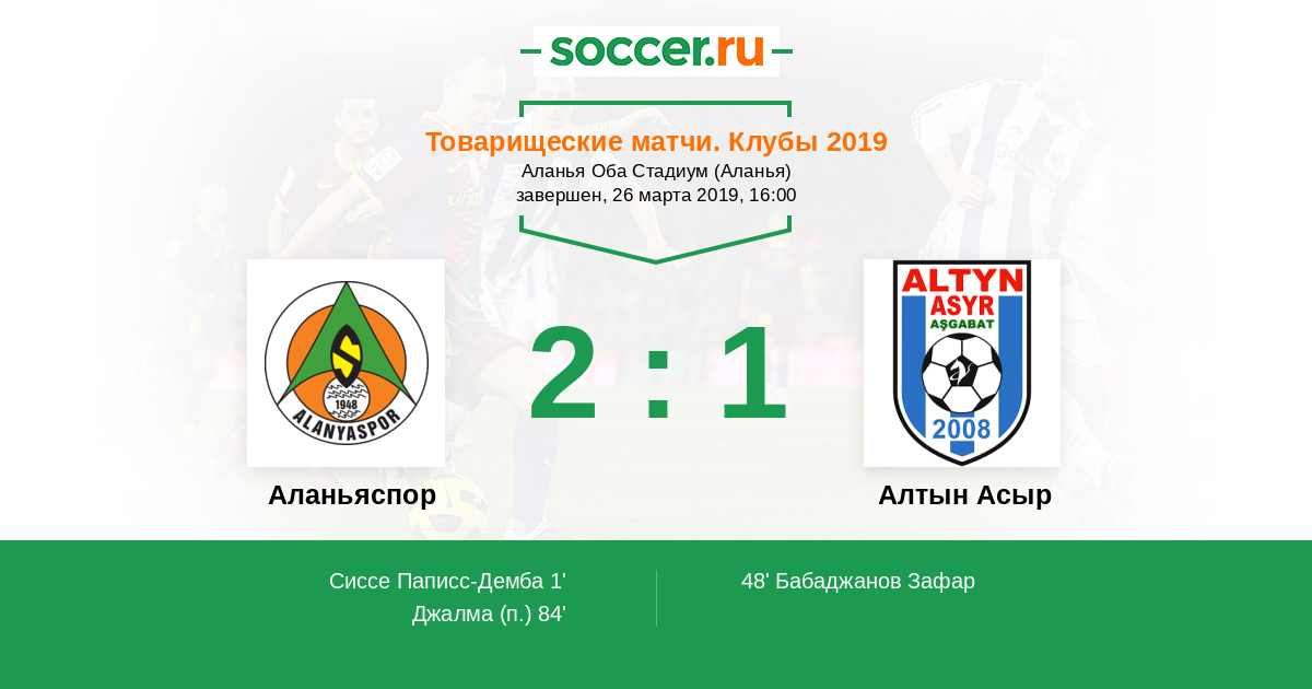 Аланьяспор - Алтын Асыр: обзор матча 26 марта 2019